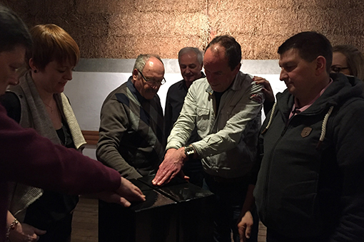 Gemeinsam wurde ein 500 kg schwerere Stein in Schwingung gebracht. Dann ging es in die absolute Dunkelheit um ein leckeres 4-Gänge-Menü zu erleben. Mit viel Gelächter und Spaß wurde gemeinsam die dunkle unbekannte Welt erforscht. So manche lustige Diskussion entstand: Rot- oder Weißwein? Rinder- oder Putenfleisch ? Tiramisu oder Schwarzwälderkirsch?