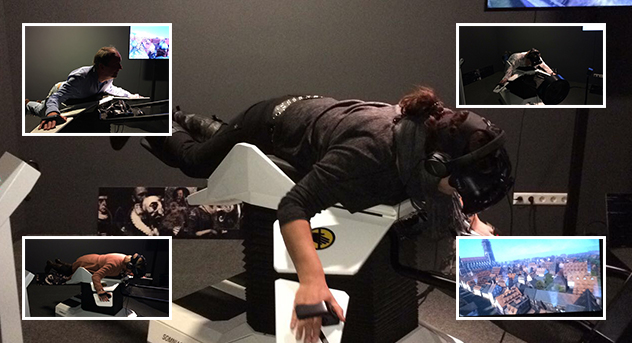 Das gesamte Team durfte den Flugsimulator "Birdly" test und virtuell über die Stadt Ulm im Jahre 1890 fliegen.