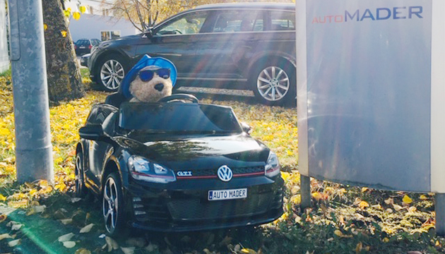 Unser neuestes Highlight ist unser kleiner VW Golf GTI. Mit seiner Größe von 1m 13cm bespaßt er auch unsere kleinsten Kunden, die Kinder. Mit der dazugehörigen Fernbedienung lässt sich das Auto ganz leicht steuern - wer mutig ist steigt selbser aufs Gas. Mit seinem doppel Motor erreicht der GTI eine Geschwindigkeit von bis zu 5 km/h.