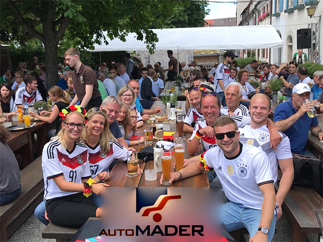 Zum letzten Vorrundenspiel unserer Deutschen Mannschaft, verabredete sich das gesamte Auto Mader Team im Biergarten.
