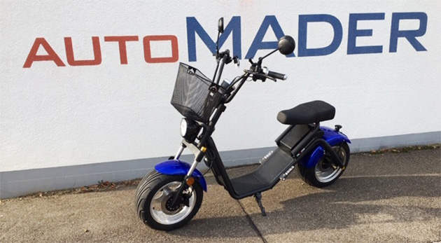 Auch wir gehen mit dem Trend – „Elektro“ mit. Der Roller kommt auf eine Reichweite von 50km und erreicht eine Höchstgeschwindigkeit von 50km/h.