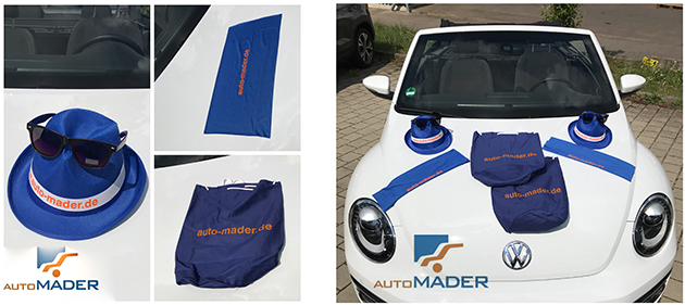 Dieses Jahr hat sich das Auto Mader Team für Sie was außergewöhnliches einfallen lassen, unsere erste Auto Mader Sommerkollektion. Der Auto Mader Sommerhut spendet Ihnen an heißen Tagen genug Schatten, zusätzlich schützt die Auto Mader Sonnenbrille Sie und hilft Ihnen den nötigen Durchblick für Ihr neues Auto zu haben. Außerdem gibt es noch einen Seesack mit dem Sie die schönen Tage im Jahr noch besser genießen können. Der Auto Mader Sportschal hält Sie selbst bei windigen Temperaturen warm. Viel Spaß mit Ihrem neuen Auto und den dazugehörigen Sommeraccessoires.