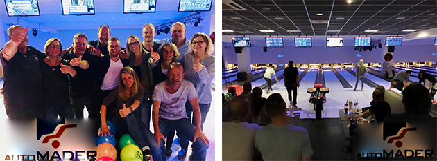 Nach einer erfolgreichen Arbeitswoche, ging das gesamte Auto Mader Team zusammen zum Bowling spielen.