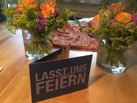 Gefeiert wurde im Kreise der Firma mit einem Glas Sekt und kleinen Geschenken.