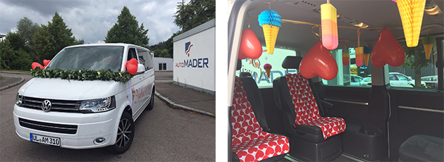 Am Wochenende hatte unser VW Multivan einen besonderen Einsatz. Er diente als Braut und Partyfahrzeug für Nadine und Chris.