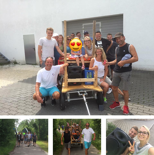 Nach einem Einkehr-Schwung in Herrlingen, kämpften wir uns den steilen Hang hinauf nach Mähringen. Dank unserer starken Männer und viel Flüssigkeit schafften wir es gemeinsam diesen Berg mit dem großen Bollerwagen zu erklimmen. Nach dem schweißtreibenden Tag, ließen wir den Abend noch gemütlich mit einem kühlen Radler ausklingen.